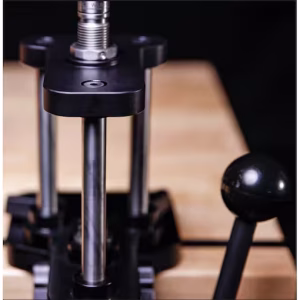 The Forster Co-Ax Single Stage Reloading Press offers effortless operation with three times the mechanical advantage of a typical press, allowing full-length sizing with minimal handle effort. Its unique snap-in, snap-out die system enables quick die changes, and its positive spent primer catcher keeps working parts clean. The press features dual floating guide rods for perfect die and case alignment, eliminating torque on the head for long life. It accepts any standard 7/8" x 14 reloading die and provides ample workspace for both right- and left-handed users.