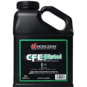 CFE stands for Copper Fouling Eraser. Hodgdon CFE Pistol powder offers high velocities, clean burning, and little muzzle flash. Hodgdon CFE Pistol Powder For Sale also nearly prevents copper fouling, which may slow down a barrel’s velocity. Hodgdon CFE Pistol Smokeless Pistol Powder is a spherical pistol powder designed for competition shooters in search of the ideal target round.