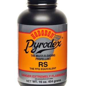Pyrodex RS is intended for use in percussion muzzleloading rifles and shotguns of all calibers. It is the most versatile powder in the Pyrodex family and has a broad range of applications. It burns cleaner and creates less fouling than blackpowder, as do all grades of Pyrodex. On a particle size basis, RS compares to FFg blackpowder. A 1-pound container is available.