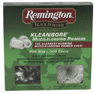 The cleanest burning primer Remington provides! This specially formulated Remington Kleanbore #209 Primers reduces chamber buildup dramatically for easier bullet seating. A cleaned bore provides you more accuracy and more rounds between cleanings. Kleanbore provides you up to 20 shots between swabs.