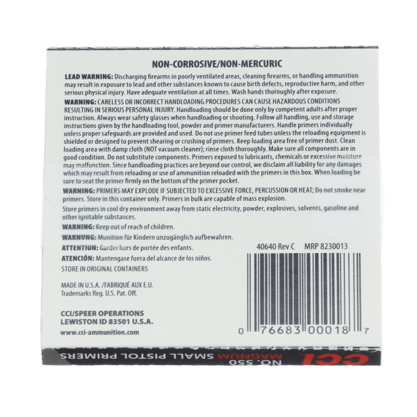 - CCI 550 Small Pistol Magnum Primers For Sale is designed to be more user-friendly than traditional primers.
