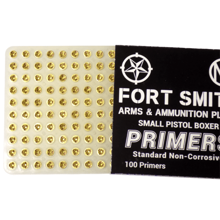 ‘Fort Smith’ (FSAAP) Small Pistol Boxer Primers are non-corrosive and meet CIP, SAAMI, and DoD quality standards as established by our federal clients. The nation’s top ammunition makers employ these brand-new primers from 2018 and 2019.