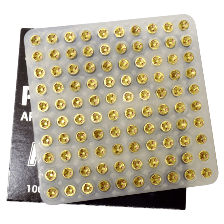- 5,000 primers: packed as 100ct. sleeves, in a 1,000 piece carton, in a 5,000 round brick.