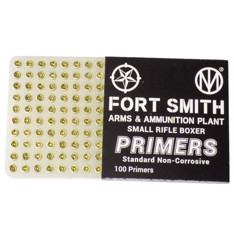 ‘Fort Smith’ (FSAAP) Small Rifle Boxer Primers are non-corrosive and meet CIP, SAAMI, and DoD quality standards as established by our federal clients. The nation’s top ammunition makers employ these brand-new primers from 2018 and 2019.