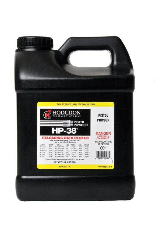 Hodgdon HP38 Powder For Sale is a spherical powder ideal for low velocity and mid-range target loads in.38 Special,.44 Special, and 45 ACP cartridges. This high energy powder is economical to load. Comes in 1 pound and 8 pound containers.