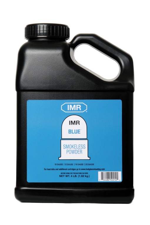 Flake shotgun powder IMR Blue burns slowly. Blue powder is versatile, used in 10, 12, 16, and 20 gauge shotgun ammunition. IMR load data allows magnum velocities and performance.