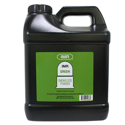 IMR Green Powder For Sale In Stock Now is a flake shotgun powder that burns slowly. Green is an excellent trap handicap powder and a popular choice for sports clays. Suitable for 12 and 20 gauge target loads.