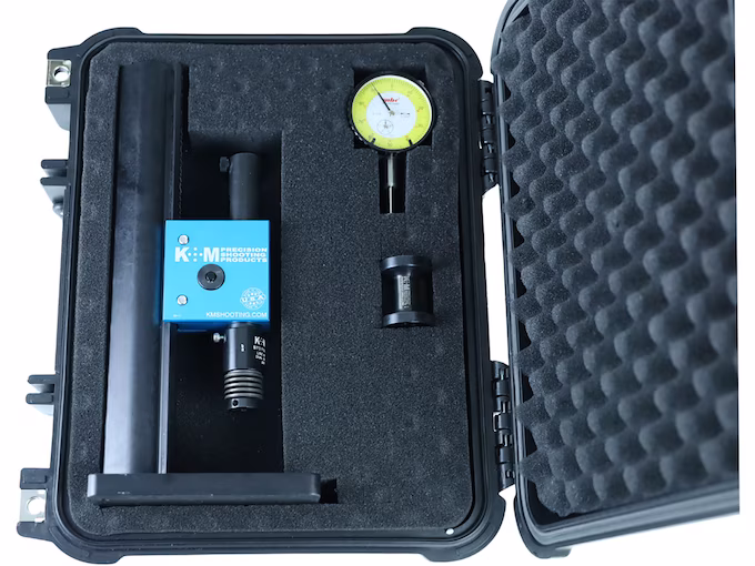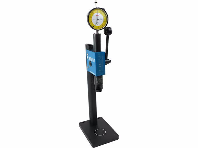 The K&M Arbor Reloading Press is a rugged, precision arbor press designed for inline bullet seating and neck sizing dies. It features a smooth toggle-link mechanism that provides sensitive force feedback, allowing reloaders to “feel” the bullet seating for consistent and accurate results. Compact and versatile, it includes a height-adjustable column with etched reference scales and mounting holes for bench installation. Available in standard and tall column versions, it supports various cartridge sizes with a 1-inch stroke and a maximum safe force of 150 lbs. Optional force packs enhance seating pressure feedback for precise control.
