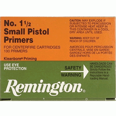 Remington 1 1/2 Small Pistol Primers For Sale In Stock Now are created with a very precisely regulated, specially designed chemical combination to guarantee that ignition is always rapid and consistent, regardless of the powder. The primers have a three-legged design that allows for more flash and a larger hitting area for the firing pin. The 1 1/2 Small Pistol Primers have been developed and tested to work in temperatures ranging from -20°F to +150°F. Each 1 1/2 Small Pistol Primer is manufactured to strict standards with a maximum variance of.0003 ounces. Our 1 1/2 Small Pistol Primers are visually examined and tested for accuracy.