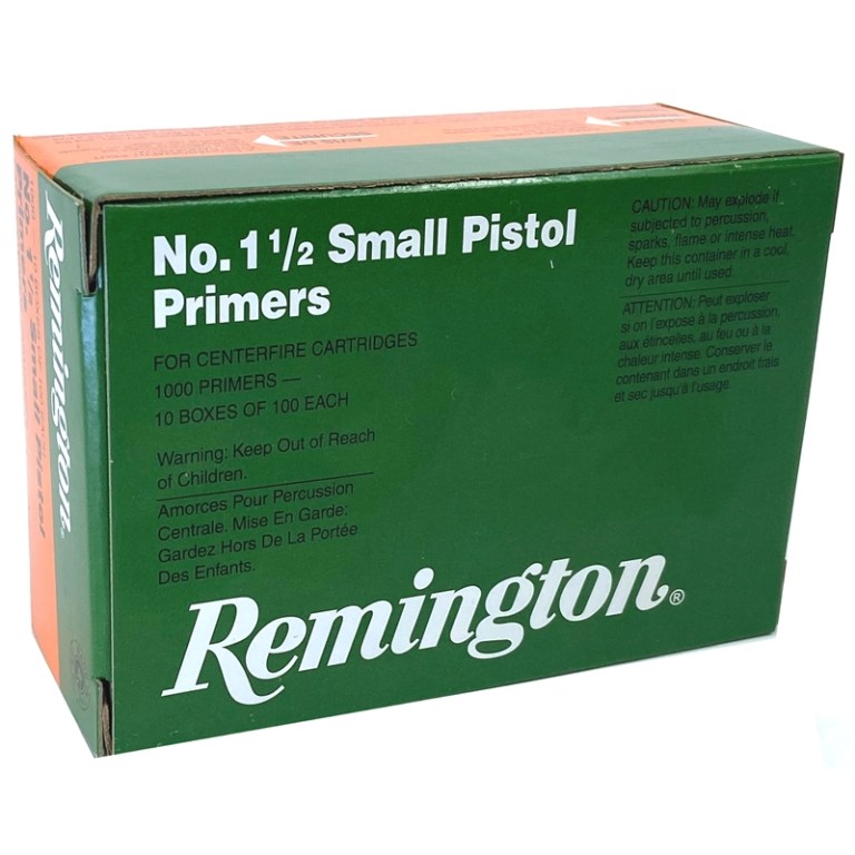 - Remington 1 1/2 Small Pistol Primers is packaged 100 per box, 10 per 1000, 50 per case, and 5000 per case