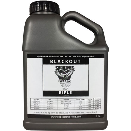 Shooters World Blackout Powder is designed for a wide variety of heavy rounds in the.300 Blackout subsonic range. The combination of charge weight, shape, and chemistry, especially for 200+ grain bullets, ensures cycling in AR systems. While being optimized for heavier rounds, the.300 Blackout can fire smaller supersonic projectiles.