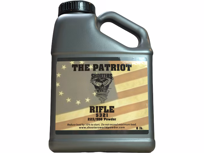 Shooters World The Patriot Rifle S321 is a versatile, spherical smokeless powder with flash suppression, ideal for popular rifle calibers like .223, 5.56mm, and .308. It offers consistent flow, reliable performance, and burn speed similar to Hodgdon H335, making it a top choice for precision and tactical shooting.
